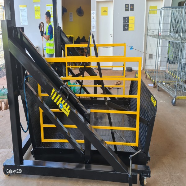 A doca móvel é uma plataforma versátil projetada para facilitar o carregamento e descarregamento de mercadorias de caminhões e outros veículos. Ela é composta por uma estrutura que pode ser ajustada em altura, permitindo que a carga seja transferida de forma segura e eficiente.