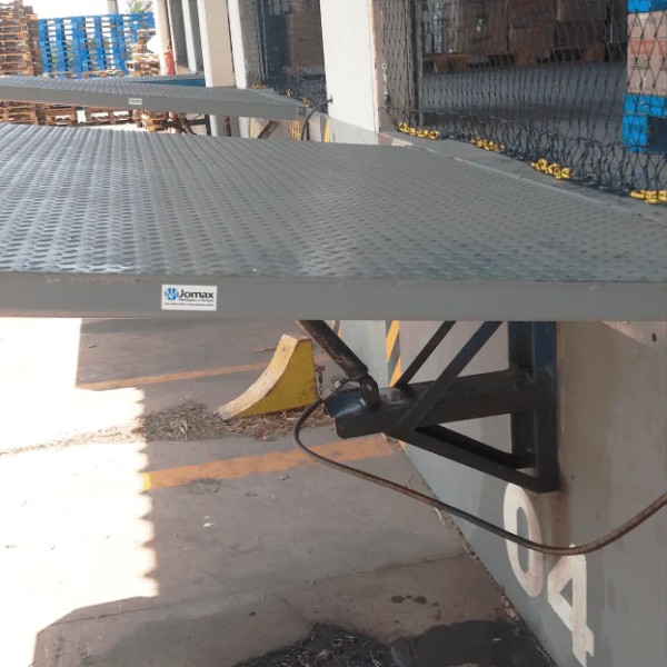 Nivelador De DocaLote minimo: 50 metros | as niveladoras frontais da jomax equipamentos são a escolha ideal para quem busca eficiência e segurança durante o processo de carga e descarga de mercadorias. capacidade de tráfego de até 12000kg de acordo com a necessidade do cliente o tampo superior e a ponteira são fabricados em chapa xadrez de aço carbono antiderrapante, garantindo a segurança e a estabilidade necessárias durante a movimentação das cargas. acionamento por molas gás ou por pistões hidráulicos e bomba eletro-hidráulica conectada à rede elétrica do local. acabamento em esmalte sintético na cor padrão do cliente. e para garantir a segurança e a durabilidade das niveladoras, elas são fixadas na doca de concreto por cantoneira em aço carbono e parafusos com bucha metálica.