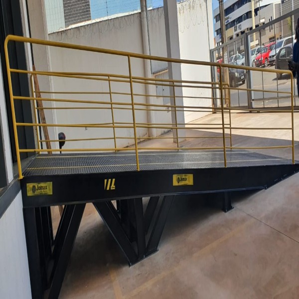 PlataformaLote minimo: 50 metros | rampa de acesso veicular a docas e galpões, podendo ser fabricadas com elevação mecânica ou eletrohidraulica por pistões hidraúlicas.